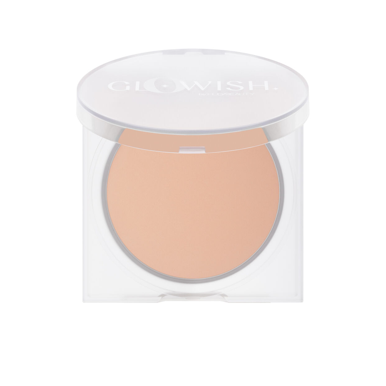 Dimensional Radiance: After application of our GloWish Multidew Skin Tint, set with the powder to add extra dimension.
