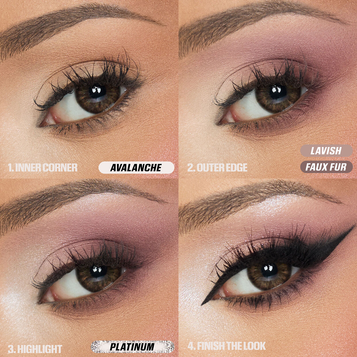 ICED OUT: CALCIUM ALUMINUM BOROSILICATE, OCTYLDODECYL STEAROYL STEARATE, PENTAERYTHRITYL TETRAISOSTEARATE, SIMMONDSIA CHINENSIS (JOJOBA) SEED OIL, HYDROGENATED STYRENE/BUTADIENE COPOLYMER, TIN OXIDE, PROPANEDIOL, DECYLENE GLYCOL, 1,2-HEXANEDIOL, CAPRYLHYDROXAMIC ACID, TRIS-BHT MESITYLENE, TITANIUM DIOXIDE/CI 77891. HIGH LIFE, FAUX FUR, POISED, COLD PLUNGE, ONESELF, FIRST CLASS: MICA, ORYZA SATIVA (RICE) POWDER, SILICA, MAGNESIUM MYRISTATE, COCOGLYCERIDES, PENTAERYTHRITYL TETRAISOSTEARATE, PROPANEDIOL, DECYLENE GLYCOL, BUTYROSPERMUM PARKII (SHEA) BUTTER, MAGNESIUM STEARATE, C10-18 TRIGLYCERIDES, 1,2-HEXANEDIOL, LAUROYL LYSINE, CAPRYLHYDROXAMIC ACID. MAY CONTAIN (+/-): TITANIUM DIOXIDE/CI 77891, IRON OXIDES/CI 77491, IRON OXIDES/CI 77492, IRON OXIDES/CI 77499, MANGANESE VIOLET/CI 77742, RED 40 LAKE/CI 16035. PLATINUM: MICA, CALCIUM SODIUM BOROSILICATE, SYNTHETIC FLUORPHLOGOPITE, DIMETHICONE, ZINC STEARATE, DIISOSTEARYL MALATE, OCTYLDODECYL STEAROYL STEARATE, STEARYL DIMETHICONE, SILICA, TRIMETHYLSILOXYSILICATE, ETHYLHEXYLGLYCERIN, PROPANEDIOL, DECYLENE GLYCOL, 1,2-HEXANEDIOL, TIN OXIDE, CAPRYLHYDROXAMIC ACID, ALUMINUM POWDER/CI 77000, TITANIUM DIOXIDE/CI 77891, IRON OXIDES/CI 77499. UNAPOLOGETIC, IDGAF: MICA, ORYZA SATIVA (RICE) POWDER, SILICA, MAGNESIUM MYRISTATE, COCOGLYCERIDES, PENTAERYTHRITYL TETRAISOSTEARATE, PROPANEDIOL, DECYLENE GLYCOL, BUTYROSPERMUM PARKII (SHEA) BUTTER, MAGNESIUM STEARATE, C10-18 TRIGLYCERIDES, 1,2-HEXANEDIOL, LAUROYL LYSINE, MALTODEXTRINE, CAPRYLHYDROXAMIC ACID. MAY CONTAIN (+/-): CARMINE/CI 75470, TITANIUM DIOXIDE/CI 77891, IRON OXIDES/CI 77491, IRON OXIDES/CI 77492, IRON OXIDES/CI 77499, MANGANESE VIOLET/ CI 77742, ULTRAMARINES/CI 77007. GOLD STANDARDS: MICA, SYNTHETIC FLUORPHLOGOPITE, CALCIUM ALUMINUM BOROSILICATE, SILICA, HYDROGENATED POLYISOBUTENE, ZINC STEARATE, DIMETHICONE, OCTYLDODECYL STEAROYL STEARATE, TRIPELARGONIN, TIN OXIDE, ETHYLENE/PROPYLENE/STYRENE COPOLYMER, LAUROYL LYSINE, PROPANEDIOL, DECYLENE GLYCOL, DIMETHICONOL, 1,2-HEXANEDIOL, BUTYLENE/ETHYLENE/STYRENE COPOLYMER, CAPRYLHYDROXAMIC ACID, PENTAERYTHRITYL TETRA-DI-T-BUTYL HYDROXYHYDROCINNAMATE, TITANIUM DIOXIDE/CI 77891, IRON OXIDES/CI 77491. AVALANCHE: MICA, ORYZA SATIVA (RICE) POWDER, MAGNESIUM MYRISTATE, SILICA, LAUROYL LYSINE, COCOGLYCERIDES, PENTAERYTHRITYL TETRAISOSTEARATE, POLYACRYLATE CROSSPOLYMER-6, PROPANEDIOL, BUTYROSPERMUM PARKII (SHEA) BUTTER, DECYLENE GLYCOL, MAGNESIUM STEARATE, C10-18 TRIGLYCERIDES, 1,2-HEXANEDIOL, CAPRYLHYDROXAMIC ACID, TITANIUM DIOXIDE/CI 77891, ULTRAMARINES/CI 77007, RED 40 LAKE/CI 16035, YELLOW 5 LAKE/CI 19140. AURORA: CALCIUM ALUMINUM BOROSILICATE, SYNTHETIC FLUORPHLOGOPITE, DIMETHICONE, ZINC STEARATE, MICA, DIISOSTEARYL MALATE, OCTYLDODECYL STEAROYL STEARATE, STEARYL DIMETHICONE, TRIMETHYLSILOXYSILICATE, ETHYLHEXYLGLYCERIN, SILICA, PROPANEDIOL, DECYLENE GLYCOL, 1,2-HEXANEDIOL, TIN OXIDE, CAPRYLHYDROXAMIC ACID, IRON OXIDES/CI 77491, TITANIUM DIOXIDE/CI 77891, ALUMINUM POWDER/CI 77000, MANGANESE VIOLET/CI 77742. VVS: CALCIUM ALUMINUM BOROSILICATE, OCTYLDODECYL STEAROYL STEARATE, PENTAERYTHRITYL TETRAISOSTEARATE, CALCIUM SODIUM BOROSILICATE, SIMMONDSIA CHINENSIS (JOJOBA) SEED OIL, SYNTHETIC FLUORPHLOGOPITE, SILICA, HYDROGENATED STYRENE/BUTADIENE COPOLYMER, TIN OXIDE, PROPANEDIOL, DECYLENE GLYCOL, 1,2-HEXANEDIOL, CAPRYLHYDROXAMIC ACID, TRIS-BHT MESITYLENE, TITANIUM DIOXIDE/CI 77891, ALUMINUM POWDER/CI 77000, IRON OXIDES/CI 77491, IRON OXIDES/ CI 77492. SHE RIIICH: MICA, ZEA MAYS (CORN) STARCH, MAGNESIUM MYRISTATE, SILICA, DIMETHICONE, PENTAERYTHRITYL TETRAISOSTEARATE, OCTYLDODECANOL, MALTODEXTRIN, C10-18 TRIGLYCERIDES, DECYLENE GLYCOL, SYNTHETIC BEESWAX, LAUROYL LYSINE, IRON OXIDES/CI 77499, IRON OXIDES/CI 77491, CARMINE/CI 75470. BLING: RAYON, HYDROGENATED POLYISOBUTENE, GLASS BEADS, GLYCERIN, STYRENE/ACRYLATES COPOLYMER, WATER/AQUA/EAU, SYNTHETIC WAX, UREA, BENZYL ALCOHOL, PHENOXYETHANOL, HYDROGENATED STYRENE/BUTADIENE COPOLYMER, PROPANEDIOL, DECYLENE GLYCOL, 1,2-HEXANEDIOL, CAPRYLHYDROXAMIC ACID, ALUMINUM POWDER/CI 77000. DIAMOND DEW: CALCIUM ALUMINUM BOROSILICATE, OCTYLDODECYL STEAROYL STEARATE, PENTAERYTHRITYL TETRAISOSTEARATE, SILICA, SYNTHETIC FLUORPHLOGOPITE, SIMMONDSIA CHINENSIS (JOJOBA) SEED OIL, HYDROGENATED STYRENE/BUTADIENE COPOLYMER, TIN OXIDE, PROPANEDIOL, DECYLENE GLYCOL, 1,2-HEXANEDIOL, CAPRYLHYDROXAMIC ACID, TRIS-BHT MESITYLENE, ALUMINUM POWDER/CI 77000, TITANIUM DIOXIDE/CI 77891, IRON OXIDES/CI 77491. LAVISH: MICA, ZEA MAYS (CORN) STARCH, MAGNESIUM MYRISTATE, SILICA, DIMETHICONE, PENTAERYTHRITYL TETRAISOSTEARATE, OCTYLDODECANOL, MALTODEXTRIN, C10-18 TRIGLYCERIDES, DECYLENE GLYCOL, SYNTHETIC BEESWAX, LAUROYL LYSINE, IRON OXIDES/CI 77499, IRON OXIDES/CI 77491, IRON OXIDES/CI 77492, TITANIUM DIOXIDE/CI 77891.