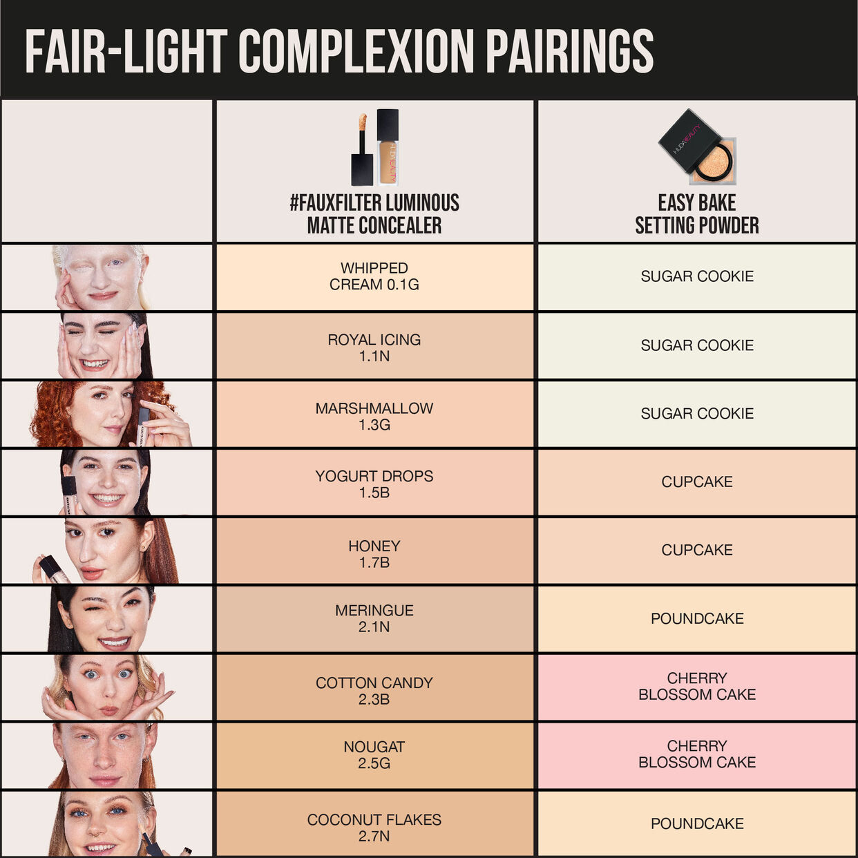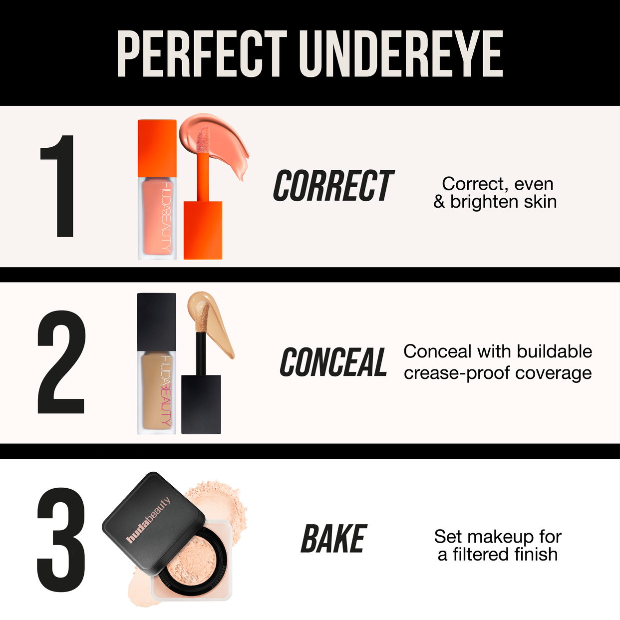 This kit includes the #FAUXFILTER Color Corrector, the #FauxFilter Luminous Matte Concealer, the full size Easy Bake Loose Baking & Setting Powder.
