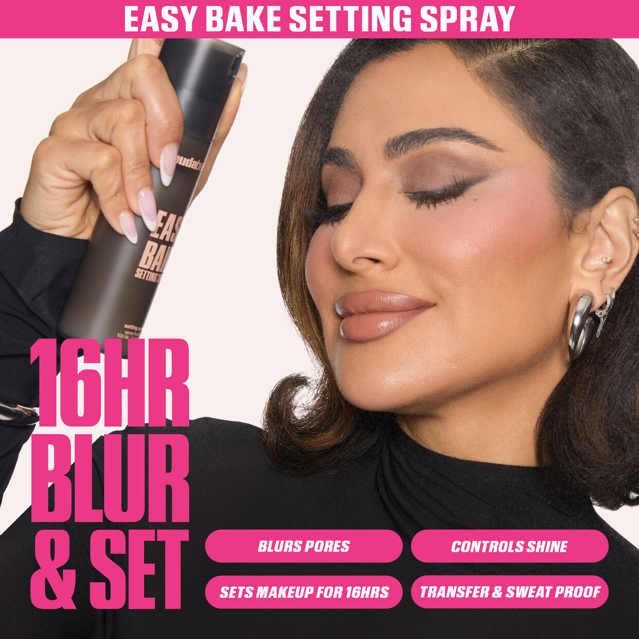 Easy Bake Setting Spray: A long-lasting setting spray that blurs pores, controls shine & locks makeup for 16hrs.