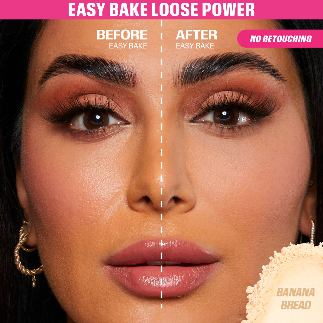 Easy Bake Loose Powder:  A lightly pigmented, silky setting powder that bakes & sets, blurs the look of fine lines, and locks in makeup for 10 hours with an airbrushed finish.